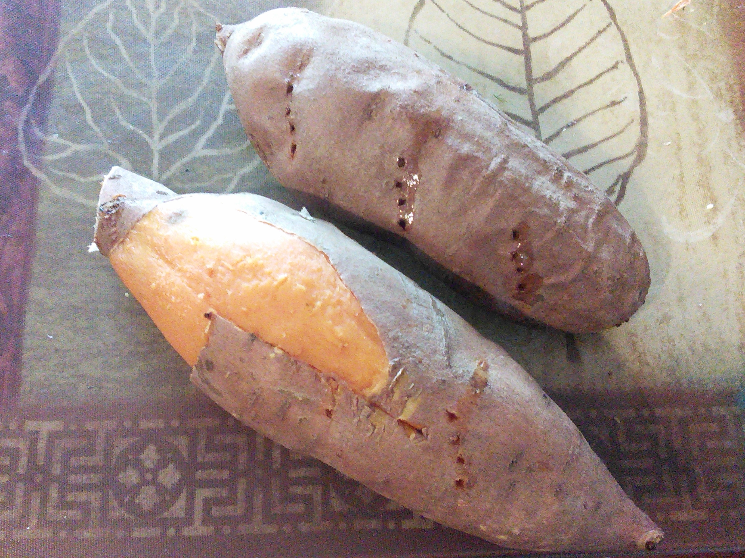 - 2 baked yams or sweet potatoes (takes about 35 minutes to bake at 400°, or microwave them)