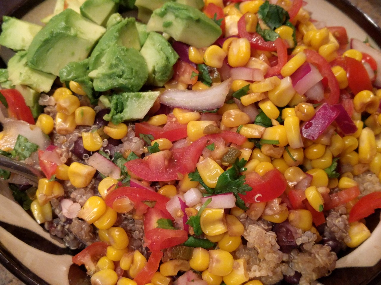 Note: the quinoa can be replaced with brown rice or other whole grain, and you can use whatever salsa recipe you like best