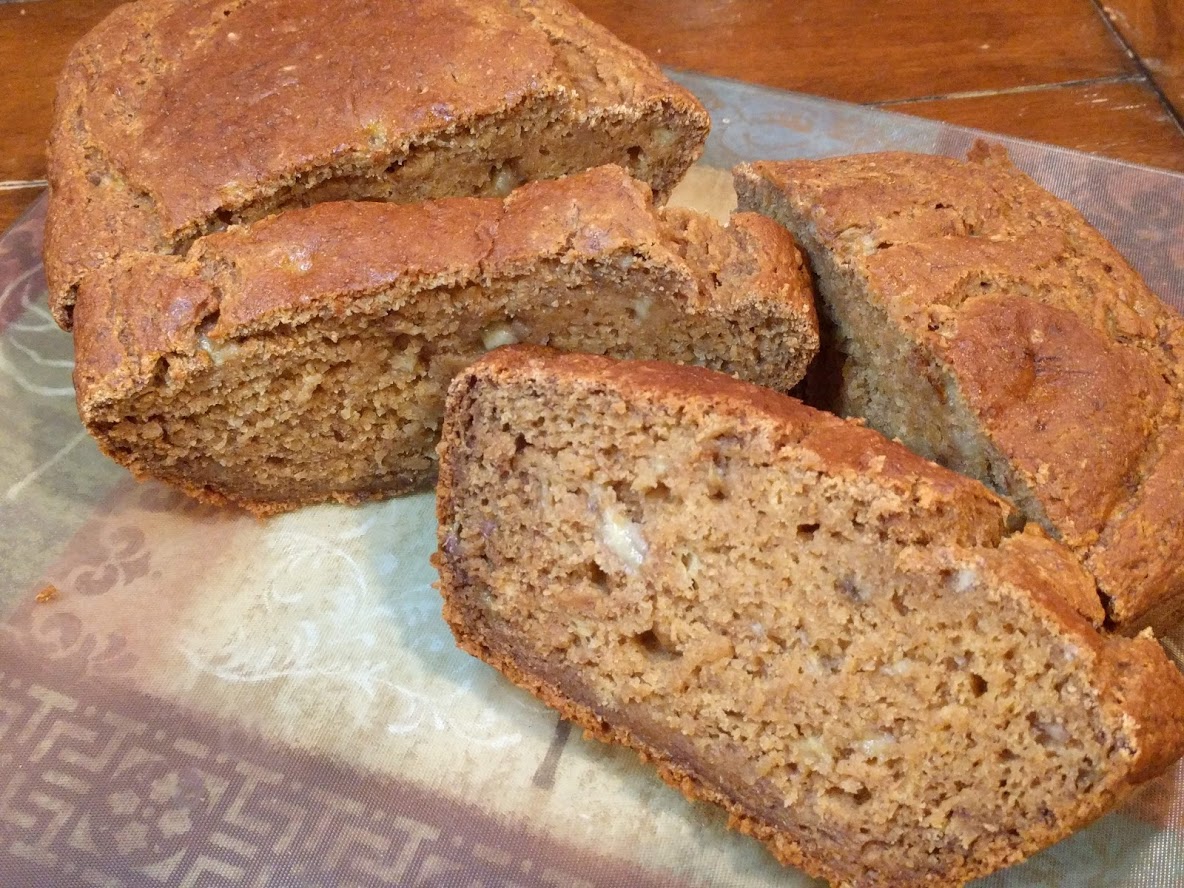 A new recipe from Forks Over Knives! And it’s a bread recipe! After making it once, my first impression was that the apple flavor is a little too subtle for my taste. It’s definitely noticeable, but I like a stronger apple flavor and using only applesauce wasn’t quite enough to get it there. I think the walnuts are a great addition or the bread might be a little plain. You could also easily add unsweetened dried cranberries, or perhaps even chopped dried apple slices. The bread is fairly thick – which I like a lot in my breads– without being overly chewy.