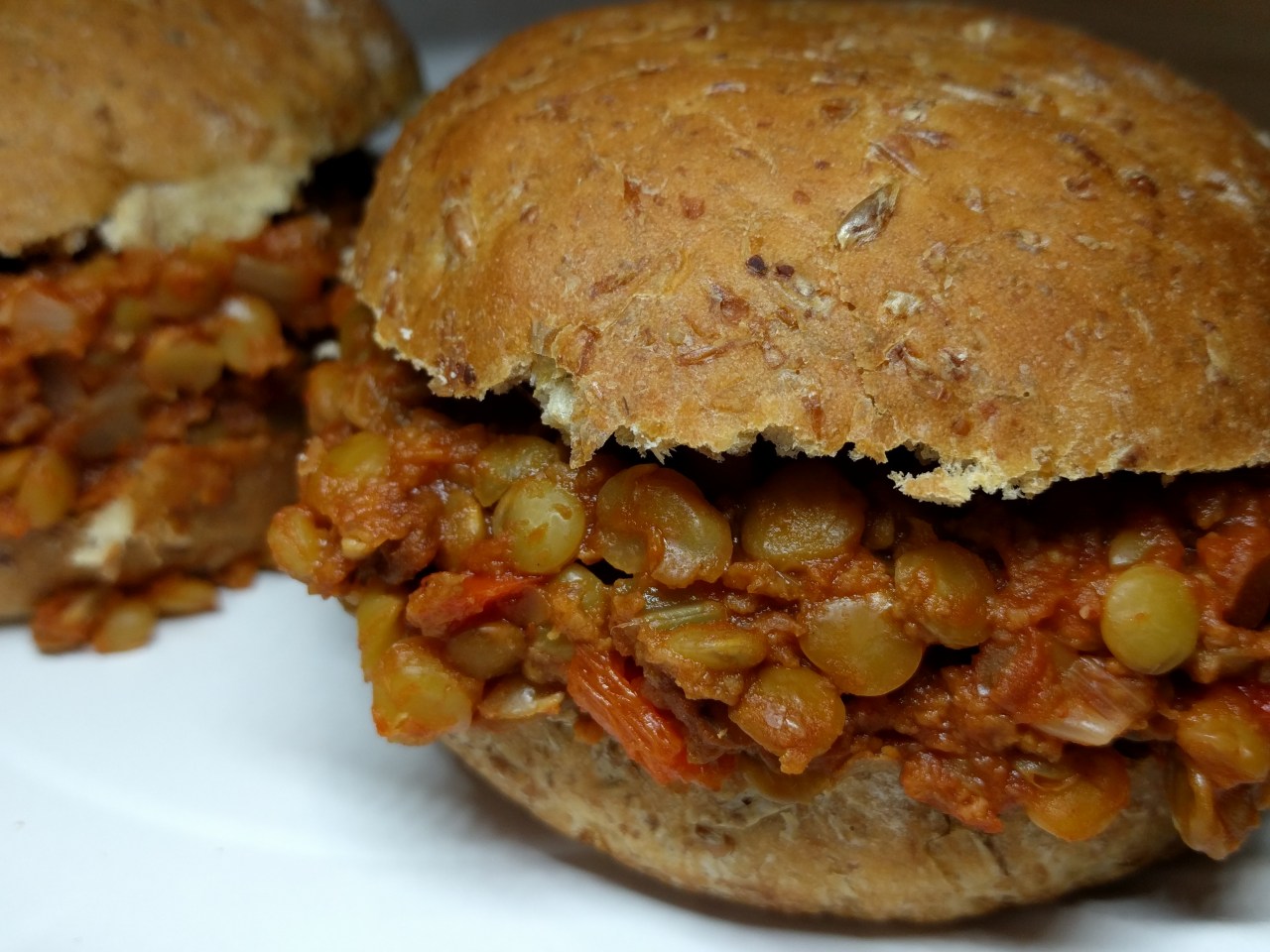 The sloppy joes have a surprisingly sweet taste that I’m not a fan of, so I won’t be including the brown sugar in the future. If you like having a sweet barbeque flavor then you’ll probably want to include it. Although the recipe calls for simply chopping the veggies, it might be better to dice them to they smoosh together more while they’re in the pressure cooker. The sandwich is somewhat difficult to eat (it is a really sloppy joe); I learned my lesson the hard way not to overfill them! Original recipe from Epic Vegan Instant Pot Cooking.