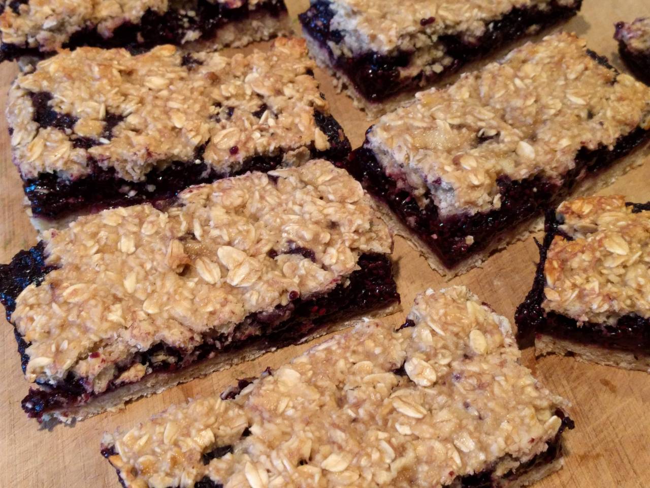 I have no idea how I found this recipe but it’s been on my “to-try” list forever now. I was looking for a new, easy breakfast recipe for my on-the-go days, and while I was looking through my horde of to-try recipes I ran across this one. I’m glad I gave it a whirl because these are great breakfast bars / snack bars / whenever-I-feel-like-it bars! They’re really easy and pretty quick to make. The most time-consuming part is waiting on the blueberries to melt and then the 30-minute cook-time.