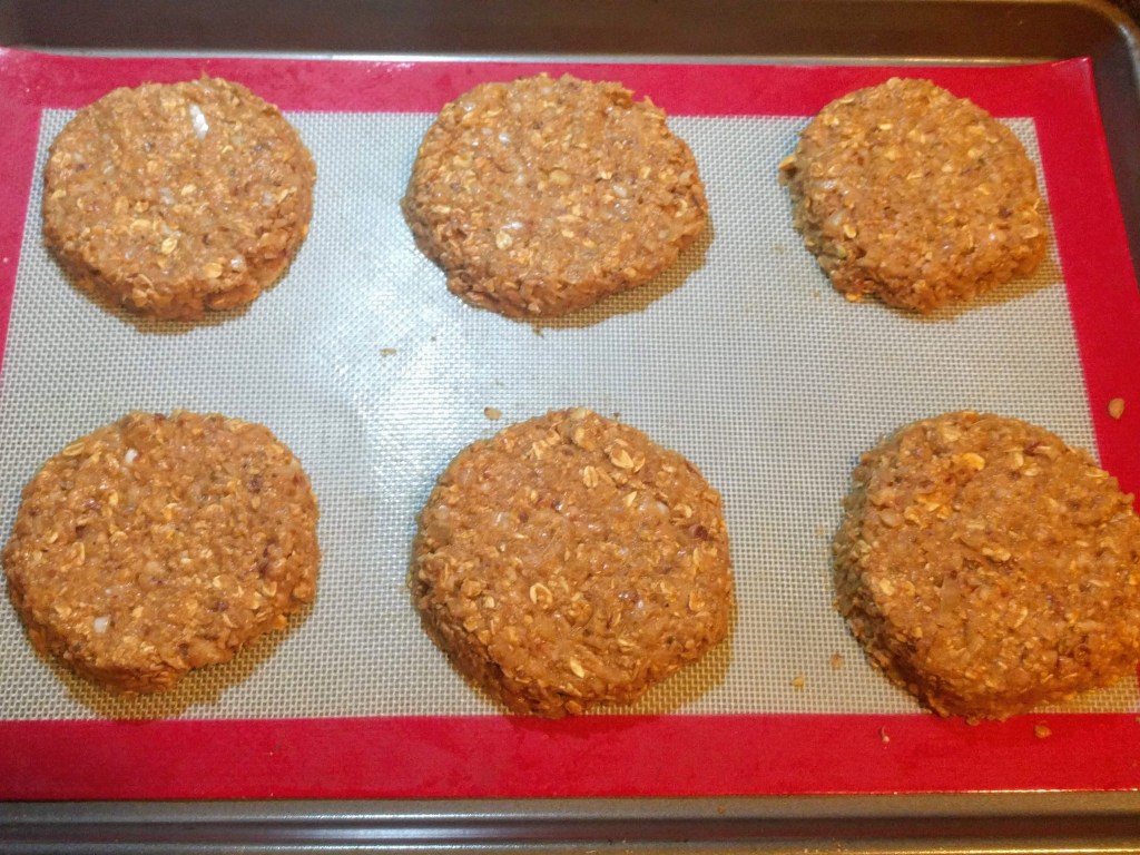 Bake for 25-35 minutes. Burgers will be hot throughout, but don’t let get too dry (or else they’ll crumble). Allow to cool for a few minutes on the baking sheet before serving.